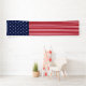 Large indoor United States American flag banner with stars and stripes that fill the banner large enough to stretch across 12 feet of space on an indoor wall or hung from the ceiling. Use this banner for a political rally, a veterans themed event, Independence day, patriotic event celebrating anything American. or corporate conventions and trade shows.