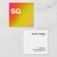 A square business card template with a simple clean design. A solid colour on the front with initials aligned to the left around 1/3 from the top. With name, profession/job title along with telephone, email and website address on the reverse side. This template is also a good starting point for further customisation.