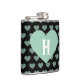 Large Light Green Heart & Black Background Hip Flask