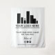 Black and white backdrop for your business with your big logo and your custom text. Add your social media handle beneath black social media icons.