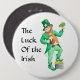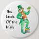 A large white button decorated with a leprechaun and the words, 'The Luck of the Irish'.