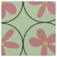 Large Mint Retro Floral Tile Ivory Linen Fabric
