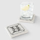 Large Monogram Art Deco Frame White Damasks Stone Coaster