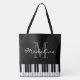 Large monogram shoulder tote bag with piano keys. Custom tote bags for music teacher and students. Elegant monogrammed design with stylish typography and personalised name initial letter. Classy gift idea for pianist, piano instructor, piano player, performer, musician, music school lessons, colleague, co worker, kids etc. Classical keyboard instrument design for men, women and kids. Monogrammed gift ideas for Birthday, Christmas Holidays and more.