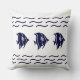This pillow designed by Sandy Closs part of the ocean nautical themed decor navy  fish  on  white  PILLOW on one side and navy  on back. nautical designs perfect for coastal living, lake decor ,river decor and more...