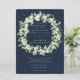 Large Navy Snowberry+Eucalyptus Wreath Wedding Invitation