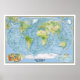 Physical map of world with main features of elevation and depression on the earth's surface.
