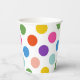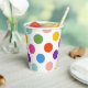 Large rainbow coloured dots of red, pink, yellow, green, aqua, blue and violet give this paper cup a cute vibe and coordinate seamlessly with the Party Safari Animal birthday suite for a cohesive but not overly matchy-matchy look.