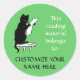 This modern self-adhesive bookplate features a vintage illustration of a black cat reading.