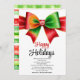 Large red, green bow and stripes Christmas Holiday Card