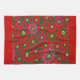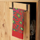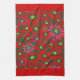 Large Red Poinsettia Flowers on Green Red Borders Tea Towel