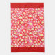 Large Red Poinsettia Retro Floral Pattern Kitchen Tea Towel