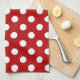 Large retro dots - red and white tea towel
