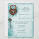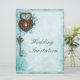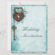 Large Romantic Hearts Lock and Key Teal Wedding Invitation