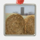 Large Round Hay Bales in a Farm Field Metal Ornament