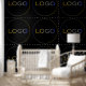 The design is of a customisable large round logo photo presented in a simple pattern on black coloured background. The background colour is customisable; it can be edited to that of the company/business/corporate colour palette.