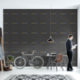 The design is of a customisable large round logo photo presented in a simple pattern on dark grey coloured background. The background colour is customisable; it can be edited to that of the company/business/corporate colour palette.