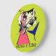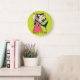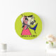 Add a splash of love and colour to your home with this eye-catching round wall clock. The vibrant yellow-dominated design features an adorable cartoon couple, customised with two names of your choice.