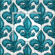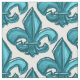 Large Sketch Fleur De Lis Pattern Dark Cyan Fabric