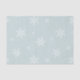 This tissue wrap paper features a light white snowflake pattern on an icy blue background.
