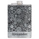 Large Steampunk Silver Zinc Gears Custom Name Hip Flask