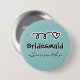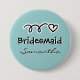 Large teal colour bridesmaid buttons with cute whimsical love heart and elegant font. Cute print for bachelorette party, bridal shower and wedding party. Visit our fun store for more classy and fancy designs for marriage. Customisable background colour.