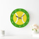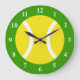 Large Tennis ball wall clock with big clear numbers Tennisball wall clock with numbers for home or court club house. Customisable background colour.