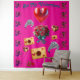 "This vibrant Valentine’s tapestry is a celebration of love with its striking pink background and whimsical romantic motifs. Each design element is crafted to stand alone yet come together seamlessly, creating a tapestry that’s both a modern pop of color and a nod to classic love symbolism."