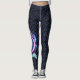 This cool pair of leggings has a large water dragon on the right leg in shades of blue, pink, green and purple on a background of blue dragon scales.