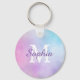Large Wht Monogram & Purple Script Name Iridescent Key Ring