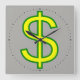 This design features a large yellow dollar sign ($) with a green outline.