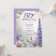 Elegant larkspur and water lilies floral design "50th Birthday Party" design featuring a floral frame of purple larkspur and water lilies on a pastel-toned watercolor background.