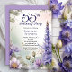 Elegant larkspur and water lilies floral design "55th Birthday Party" design featuring a floral frame of purple larkspur and water lilies on a pastel-toned watercolor background.