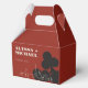 A fun and modern custom Las Vegas casino wedding favour box to thank your guests for coming to your event in Las Vegas! This wedding favour box features graphite black bold playing card suit graphics, a modern Las Vegas skyline rendering, and fully customisable font and text on casino red background. Perfect for a trendy modern or classic traditional event - this fun favour box is versatile!