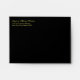 This classy, decorative A2 note card envelope has a midnight black matte exterior and a gold interior with a faux foil sheen. Perfect for 4"x9" wedding and party invitations. Use the orange "Customise It" button above to add your own return address in the upper left-hand corner. Designed by Cheryl Daniels © 2013.