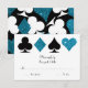 This wedding invitation features elegant typography and an accent graphic of card suits in white and malibu blue faux glitter. Perfect for a Las Vegas wedding in a little chapel off the strip, all you need is love and a witness or two!