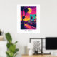 Retro-style Las Vegas poster with a glowing neon sunset, palm trees, vintage cars, and the iconic Strip lit up in vibrant colors.