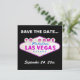 Las Vegas sign destination hot pink wedding Save the Date announcement with the famous neon sign and the text “Welcome to Fabulous Las Vegas, Nevada”. Some parts are courtesy of anasofiapaixao.