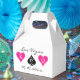 Las Vegas wedding favour box with monogram playing card suits. Cute poker theme design with neon pink hearts and spade plus date of marriage. Add name initials of bride and groom. Monogrammed King and gueen of hearts.
