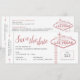 Rose gold pink and grey "Wedding in Las Vegas" boarding pass plane ticket save the date card. Guests adore getting these fun destination wedding save the dates!