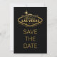 The famous Welcome to Las Vegas Sign (modified to read Wedding in Las Vegas) in faux gold foil on an editable colour black background save the date card with your own photos in the back with modern geometric abstract frame overlays. Fun font design on the back is editable so you can create an elegant and modern Vegas Destination Wedding save the date invitation card.