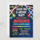Neon glow rainbow colours arcade games and laser tag birthday party invitation for boys and girls.