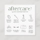 Modern boho lash extensions aftercare instructions card with modern fonts, lashes care icons and sage green colour scheme. The modern font reads 'lashes' and 'aftercare' , the back of the cards includes icons and care tips for faux eyelash extensions. You can customise these bohemian lashes after care cards with your brand colours, logo and business details to make them your own.