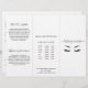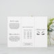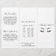 Simple trifold brochure with a minimalist black and white design featuring eyes, lashes and brows along with your business name in an elegant script font with swashes on the front panel. The back panel has your hours of operation and contact information. The inner fold panel has two headers and text boxes. The inside has multiple templates for information about your business on the outer panels and a price list in the middle panel. Fold lines are included and may be removed and the text and background colours may be changed to any colours you wish by clicking the customise button. This trifold brochure is perfect for a lash technician but can also work for any business in the beauty industry.