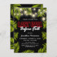 Summer party invitations featuring a stylish black background that can be changed to any colour, twinkle string lights, tropical summer palm leaves, a red & white neon sign that reads "last call before fall", and a modern text template that can easily be personalised.