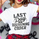 This distressed typographic design features the quote, “Last Day of Restraining Order,” in black print. Have you ever looked forward to something that seemed to take forever? Finally, no more stressing out about restrictions. Fly free!