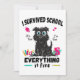 Funny school design with a stressed dog and the quote "I survived school, everything is fine". Perfect for last day of school before summer vacation or summer break. For students and teachers.