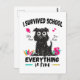 Funny school design with a stressed dog and the quote "I survived school, everything is fine". Perfect for last day of school before summer vacation or summer break. For students and teachers.