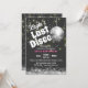 © Socialite Designs Inc. & LICENSORS. Celebrate a Disco Bachelorette party by inviting the guests with this retro last disco bachelorette party invitation. Colours are silver, white, pink and grey. The design incorporates a silver disco ball and gold / white string lights as a background.