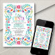 Mariachi, margaritas, and memories! Fire up the fiesta with this mexican folk art fiesta design. The colourful text and the artwork (hand-drawn by Lively Scribe herself) give this design a whimsical yet elegant vibe. Perfect for the latinx in your life. Or a party that's just conveniently close to Cinco de Mayo or Dia de los Muertos. Order your printed invitations and party supplies or download your digital invitations now for a day they'll never forget!